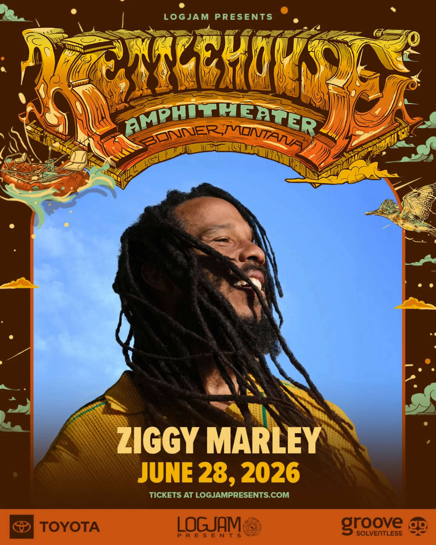 Logjam Presents is pleased to welcome Ziggy Marley for a live concert performance at the KettleHouse Amphitheater on June 28, 2026.